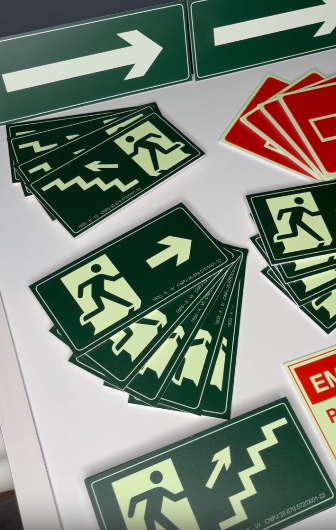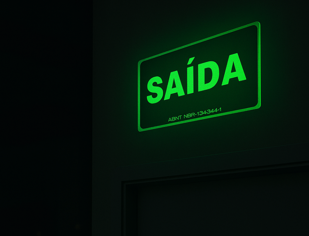 Aplicar em saídas para reforçar as rotas de evacuação do espaço.